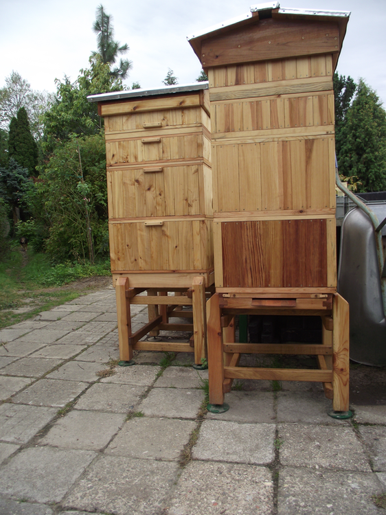 Nowy temat związany z moimi spostrzeżeniami dotyczącym uli drewnianych Dadant- Blatt 10 ramkowych, jakie kilka lat temu kupiłem - zaczynając przygodę z hodowlą pszczół. W trakcie pracy z nimi, zauważyłem kilka niedopracowań – skłoniły mnie one do pomysłu stworzenia własnych konstrukcji z kilkoma modyfikacjami. Inspiracji w sieci jak na lekarstwo (może poza pomysłami znalezionymi na Pintereście). Materiał budulcowy pochodził z odpadów jakie nazbierały się przez kilka lat w efekcie innych projektów. Całość powstała w okresie jesienno-zimowym, kiedy to mam czas na majsterkowanie. Jedyną rzeczą jaką kupiłem była blacha aluminiowa do pokrycia daszków. Wykorzystałem również drewno pochodzące z wycinki w moim ogrodzie – stary szpaler żywotników zachodnich i olbrzymich (Thuja occidentalis i T. plicata). Drewno bardzo lekkie (jak balsa), deseczki wycięte z nich na obce pióro, potraktowałem kąpielą w oleju tungowym z terpentyną. Po wysuszeniu, wykorzystałem jako zewnętrzną warstwę. W wolnej chwili naliczyłem 9 gatunków drewna jakie użyłem w tych ulach. Mogę sobie pozwolić na tego typu pomysły i ich realizację, ponieważ posiadam niezbędny sprzęt (typ hobby), który kolekcjonowałem w ciągu kilkunastu poprzednich lat. Najwartościowszym okazał się zakup mobilnej piły taśmowej (hobbystycznej), na której po kilku modyfikacjach (dobudowany stół i sanki), mogę przecierać wałki drewna o grubości do 30 cm. Idealne rozwiązanie, ponieważ wykorzystuję krótkie (1,10 m) wałki tzw. papierówkę jak i inne króciaki wycinane w moim ogrodzie i nie tylko. Mam zaprzyjaźnioną firmę wycinkową, która co raz przywozi mi różne „egzotyczne cudaki” za przysłowiową „flaszkę”. Po przestudiowaniu kilku tomów periodyku z lat 1905-1914 L'Apicoltore, periodico dell'Associazione centrale d'incoraggiamento per l'apicoltura in Italia – kolejny projekt ula w realizacji – ale o tym później. Polecam lekturę tym, którzy chcą wiedzieć więcej. Z pewnością kreatywności i świeżości w spojrzeniu na temat pszczelarstwa, powinniśmy się uczyć od naszych dziadków - z poprzedniej epoki... Widać, że forum w tej formie – przy braku aktywności - zdaje się umierać na rzecz coraz powszechniejszych kont społecznościowych - jakby wszystko zostało napisane ? Bez dopływu nowych użytkowników z nowymi pomysłami, spostrzeżeniami czy przemyśleniami - widzę smutny koniec Forum Banicja, gdzie zebrała się kiedyś grupa osób ze świeżym spojrzeniem na pszczelarstwo. Ja kieruję się swoim prywatnym dekalogiem, dzięki któremu nie osiadłem na laurach; 1. Myśl samodzielnie. 2. Podważaj autorytety. 3. Nie przyjmuj żadnego twierdzenia na wiarę. 4. Konfrontuj swoje pomysły z doświadczeniem i obserwacją. 5. Jeśli Twoja ulubiona idea nie przejdzie empirii, to odrzuć ją jako błędną. 6. Idź za głosem dowodów. 7. Jeśli brak Ci dowodów, to zawieś osąd. 8. Wyciągaj logicznie wnioski. 9. Pamiętaj, że możesz się mylić. 10. Bieda jest matką kreatywności, bogactwo – rozleniwia. Zachęcam Użytkowników do dzielenia się swoimi pomysłami. (opisy pod zdjęciami – w razie wątpliwości i niejasności proszę zadawać pytania)3 punkty