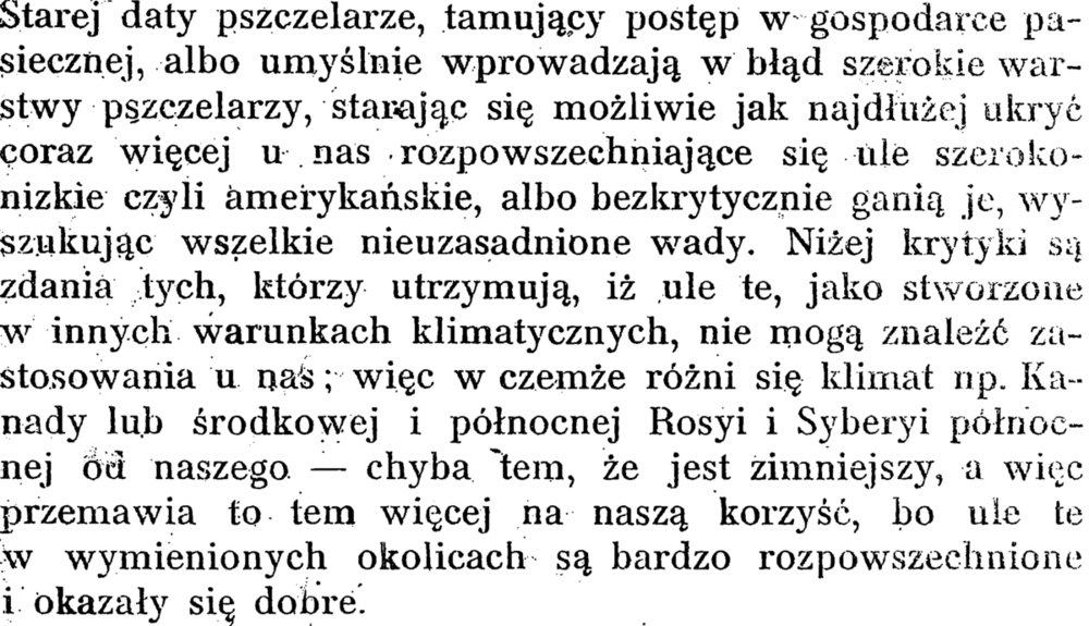 michal79 Opublikowano 21 Stycznia 2021 Autor Opublikowano 21 Stycznia 2021 (edytowane) Przedwojenne rozważania. Autor opisuje swoje obserwacje dotyczące górnego wylotka. Jako górny rozumiem raczej nie pod samą powałką, tylko kilkadziesiąt cm niżej? Z biegiem lat ule zdominowały wylotki przy dennicy (piszę głównie o ulach korpusowych). Te wyższe zachowały się jako otwory do wentylacji, ewentualnie w sezonie do wypuszczenia trutni, które przy przekładaniu ramek do miodni zostałyby nad kratą. Pan Nicefor pisze też, jakoby w naprawdę duży mróz, ten wyższy wylotek stopniowo pokrywał się szronem. Do tego taki szron w razie potrzeby pszczoły potrafią "przepalić" swoim ciepłem. Ciekawe to wtedy pszczoły były... To rozwiązuje parę dylematów, np. "czy odśnieżać wylotek". PS. gdyby kogoś interesowało, autor pochodził prawdopodobnie stąd: Edytowane 21 Stycznia 2021 przez michal79 Cytuj