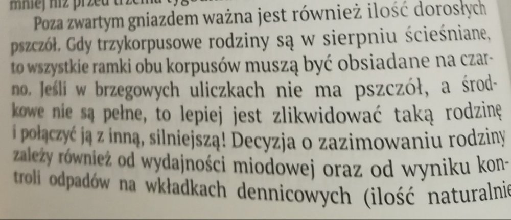 Tikcop Opublikowano 16 Września 2020 Opublikowano 16 Września 2020 (edytowane) Iwono wiem, że ma pani książkę dr Liebiga. Tam jest stosowny rozdział. Tyle w temacie ujmowania ramek na zimę. Co do wszelakich filmów to nie rozmiar ramki a zasada ważna. Ta brzmi: dużo pszczoły, dużo zapasów, najlepiej młoda matka (ze starą zdatną jakoś ujdzie ostatecznie), waroza stępiona przed wychowem pszczół zimowych (te na aktualne warunki klimatyczne większości Polski gryzą się we wrześniu!) w miarę niebrudne plastry oraz zostawić pszczoły samym sobie. Nic już im nie mieszać w ramkach, napewno nie ujmować! Na otwartej dennicy osiatkowanej w zimie, na ramkach pleśni nie będzie. Górę zamknąć na szczelno aby cugu nie było. Edytowane 16 Września 2020 przez tikcop 2 Cytuj