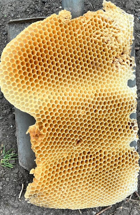 Madzin Opublikowano 2 Maja 2023 Autor Opublikowano 2 Maja 2023 (edytowane) 1 godzinę temu, manio napisał(a): Ul z nastrojem rojowym jest pewnie za mały ( niech zgadnę ? to ten z bucfastami ? ) , bucfastom potrzeba 15 ramek gniazdowych. Inaczej nawet po tym zabiegu wyroją się za 10-14 . Listewki podbite pod daszek ? Nie ? To podbij koniecznie Właśnie nie ten z żółtkami a krainka obok , jeden ul był dość słaby i postanowiłam go zasilić czerwiem na wyjściu z innych rodzin (wiem rodzina nie rokuje dobrze ale już widziałam co się dzieje w innych ulach i chciałam troche zapobiec wczesnemu nastrojowi) z tej jednej nie odebrałam No i mam… Wymieniłam na sezon daszki , zbite na wielkość korpsu z deski 15 czy 20 cm z nacięciami z każdej strony i płaska płyta na górę (narazie 3 sztuki 2 pozostałe zostaną przesiedlone na Dadant ) . Folie wywalilam już na początku kwietnia , teraz maja powalki i na to daszek . Końcówka kwietnia była zimna , wybrały cały zimowy pokarm No i sporo ich się narodziło aktualnie mam dwa pełne korpusy pszczół …. 2 tyg temu założyłam kraty odgrodowe, matki dałam na dol na odbudowane świeże ramki plus takie nie odciągnięte do końca, wiec miejsce maja na dole zobaczymy jak długo ,laduja takie ilości pyłku do gniazda ze głowa mała (na ta chwile wycofałam 3 pełne ramki na górę a na dole maja jeszcze 1 plus trochę koło czerwiu ) . U góry zostal czerw na wygryzieniu lub już wygryziony, mam plan wywalić te ramki z góry do końca sezonu bo są brzydkie i użytkowane już chyba z 3-4 lata … Nakrop maja , nie wiem z czego bo nie widać koloru na tych ,,pięknych,, 20 razy poczerwionych ramkach… Berberysy cieszą się nie małym zainteresowaniem . Edytowane 2 Maja 2023 przez Madzin 1 Cytuj